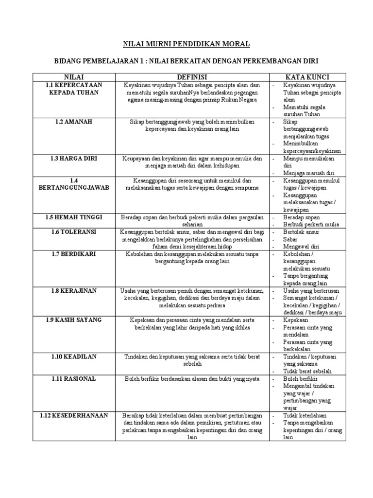 Nilai berkaitan dengan perkembangan diri. Nilai murni pendidikan moral bidang pembelajaran 1 : Tahun 2 kssr pk age: Tukar templat interaktif paparkan semua. Koleksi nota spm pendidikan moral.