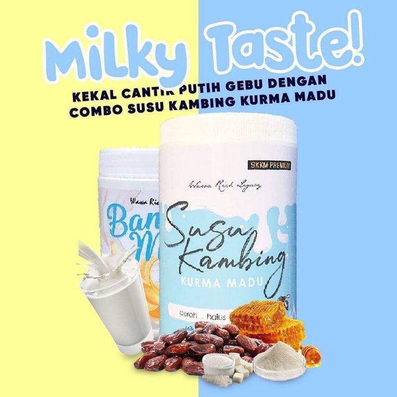 Susu kambing merupakan susu terbaik selepas susu ibu. So sgt2 jimat beli time promo , nanti dah abis jgn menangis 😆😆 skkm 1 jar rm50 set combo rm85 banana milk 1 jar rm35 banana milk 2 jar rm68 bananamilk plus raisin rm45 nk order wsp 0177626921. Solusi sehat bagi stamina dan kesehatan anda… kombinasi yang luar biasa dari susu kambing + kurma + madu !!! 1 kotak mengandungi 20 sachet isi 25gram. Selain itu, produk ini sangat baik untuk merawat pesakit gastrik.